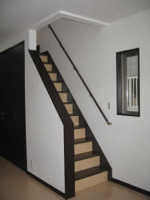 パラペットルーフの直線的なシルエットに、木の質感を活かした木目調の外壁をアクセントに配置したナチュラルモダンなお宅です。 居室は、薄いベージュのフロアとダーク調の建具を組み合わせています。ダークな建具は木目を横目にしたシンプルで斬新なデザイン"スタイリッシュフォルム"を採用しました。リビング階段は、踏板とケコミ板の色を分けて、濃淡の組み合わせにすることでお部屋のアクセントになりました。