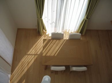 フロアと内装建具に無垢材を仕様した、爽やかな木の香り漂うお宅です。LDKは、大きな吹抜けで2階子供部屋とつながっています。上下階の縦の開放感が、ご家族の自然なコミュニケーションを誘うことでしょう。 外壁は、生産終了後も10年間受注対応商品のサイディングを採用した、安心のロングライフ住宅仕様となっています。