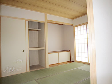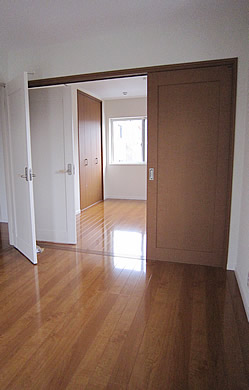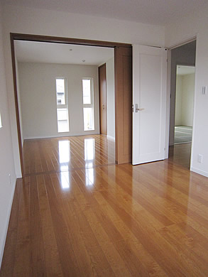 最近の住宅は収納を重視して販売されているようです。 このお住まいは、お施主様のご希望通り収納重視で、その仕様も凝っています。 そして、本格的な和室を1階と2階に設け、ぬくもりのある雰囲気を醸しだしています。 また、子供部屋も壁で仕切らず、自由に出入できる「3枚引戸」で開放感のある造りになってます。 広々とした子供部屋でのびのびとした様子が伺えます。
