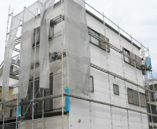 耐震補強工事と、外壁の張り替え、バルコニー・玄関ドア取替などのリフォーム工事が行なわれました。