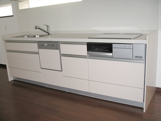 キッチンにはシンプルな色調のシステムキッチンが据えられました。